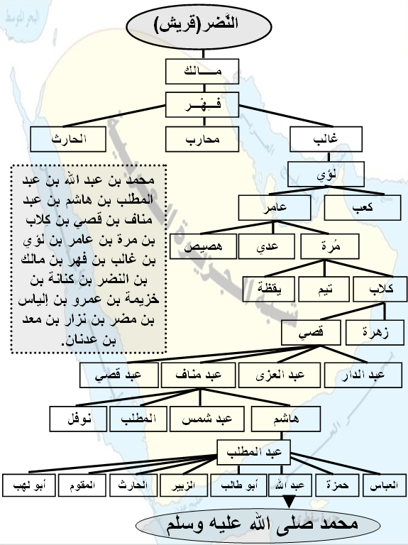 وهذه إخوتي صور توضيحية لنسب رسول الله صلى الله عليه وسلم مع بعض المعلومات عن القبائل ووجهاتها وأصل التسميات قمت بتصميمها وفقا لما طالعته من المصادر الموثوقة، أرجو أن تفيدكم.